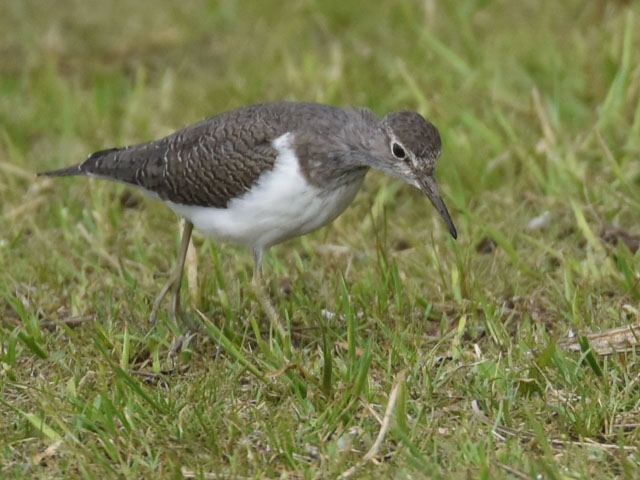 2016年5月3日、我孫子市にある手賀沼公園を散歩した。湖畔の草原で小さいシギが餌を探していた。イソシギのようだ。