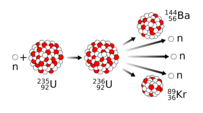 Nuclear reaction theoretically derived by Meitner and Frisch. Wikipedia