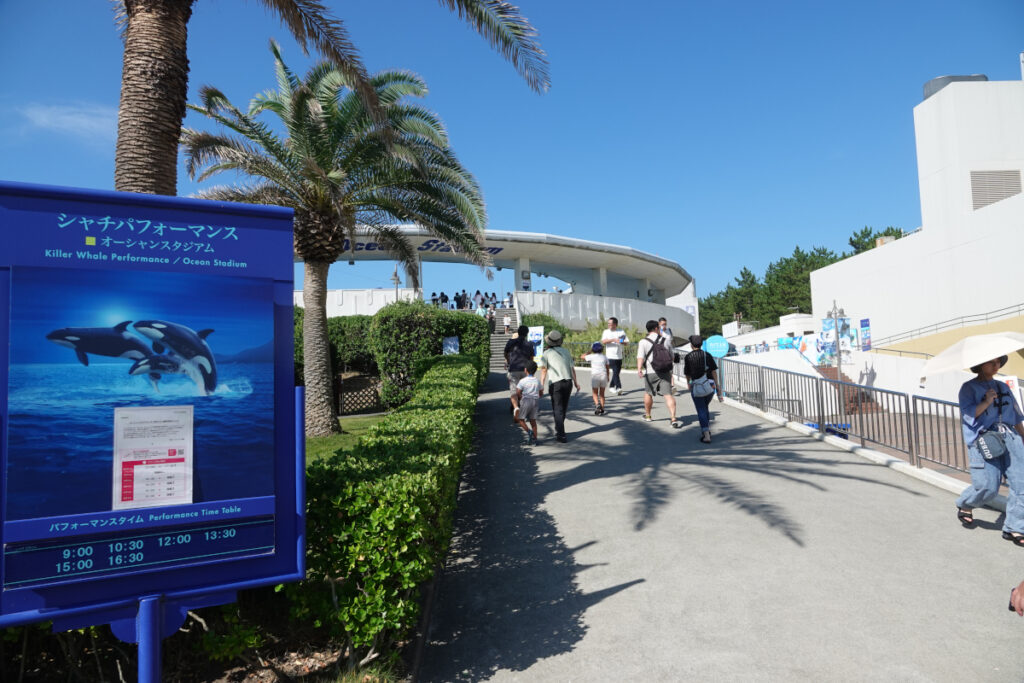 みんなで、鴨川シーワールドに行くことにしました。ここは千葉県でも人気スポットで、大変な混みようです。朝早く出て正解でした。最初、シャチパフォーマンスのプールに行きました。