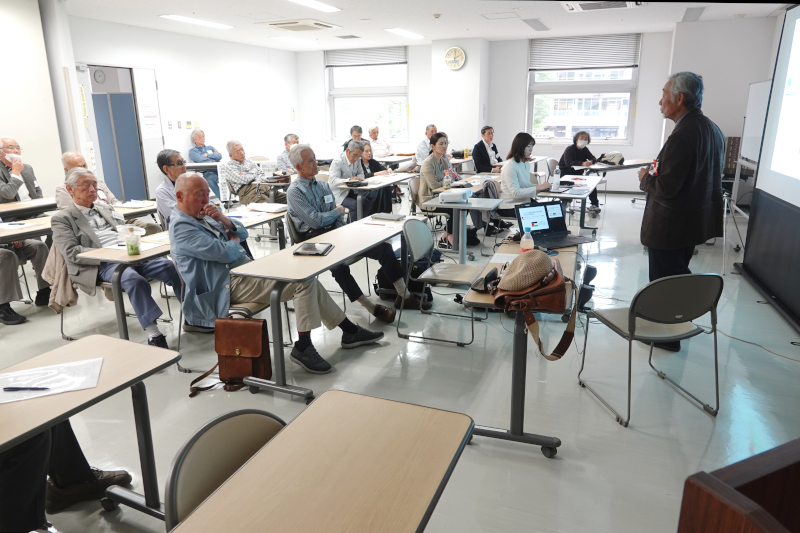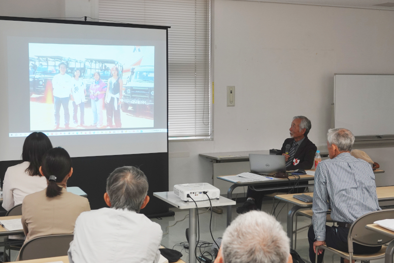 The instructor first became involved with JICA in 1977 when he was assigned to Raqqa, Syria as a member of the Japan Overseas Cooperation Volunteers. After that, he lived in the Middle East for more than 10 years in Iraq, Egypt, and Palestine (Israel). He joined JICA as a working adult and served as the director of the JICA Palestine Office for about six years from 2001. After retiring from JICA, he served as a professor at Reitaku University and a visiting professor at Ritsumeikan University. His lecture was easy to understand and interesting, consisting of an easy-to-understand oral overview, a detailed explanation using PowerPoint materials, and a video introduction of his own activities.