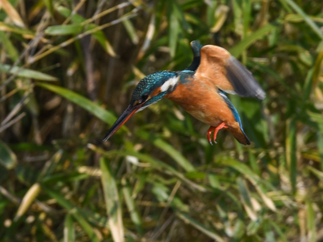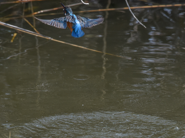 The camera focused just on the sally hovering of the kingfisher, but the focal point escaped to the background in the following scenes. It is very difficult to take a photo of the sally flight of the kingfisher.