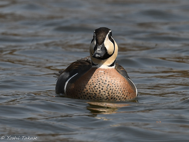 シベリア東部で繁殖し、日本には冬鳥として渡来するトモエガモ, Baikal teal, a duck which breeds within the forest zone of eastern Siberia and migrates to warmer countries in winter including Japan.