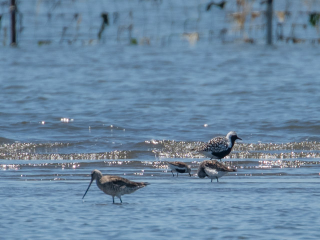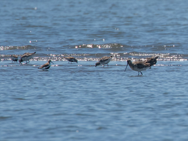 この写真にはオオソリハシシギシギ、ハマシギ、ダイゼンが写っているので、それらの大きさの違いが分かる。