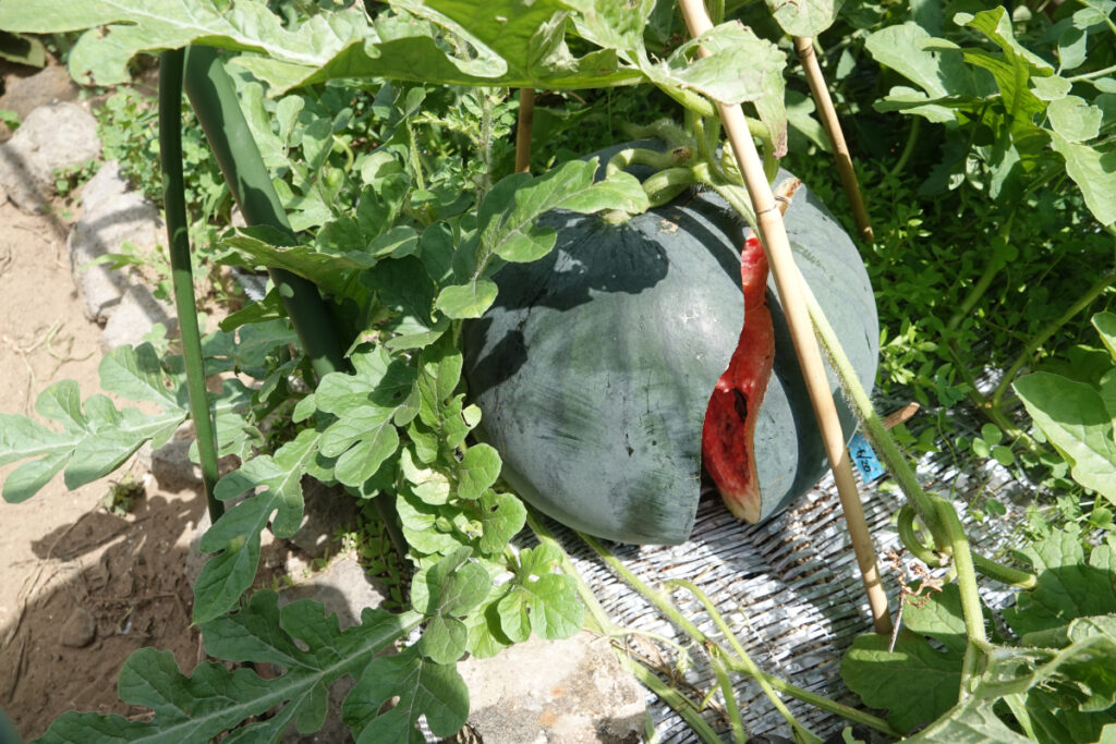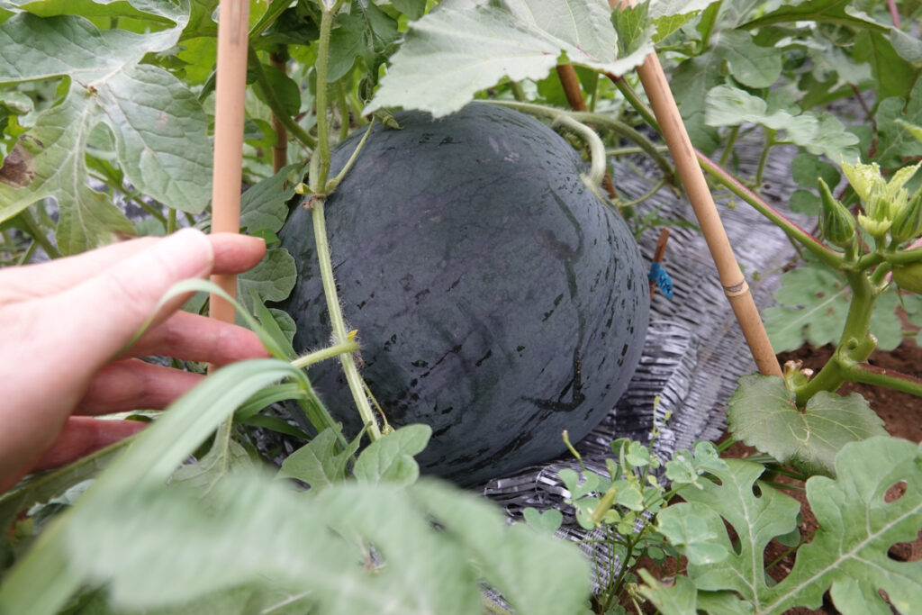 大きいスイカを収穫できた, I was able to harvest a large watermelon.