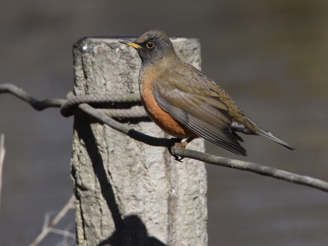 Sometimes I see Brown-headed thrushes in parks in winter. It is said that the Brown-headed thrushes are classified as subspecies Turdus chrysolaus chrysolaus and Turdus chrysolaus orii. Although it is difficult to distinguish between the two, it is said that almost all of the Brown-headed thrushes seen in the Kanto district in winter may be Turdus chrysolaus orii. Looking closely at the thrushes at Mizumoto Park and Akigase Park, It seems that either of them is Turdus chrysolaus orii.