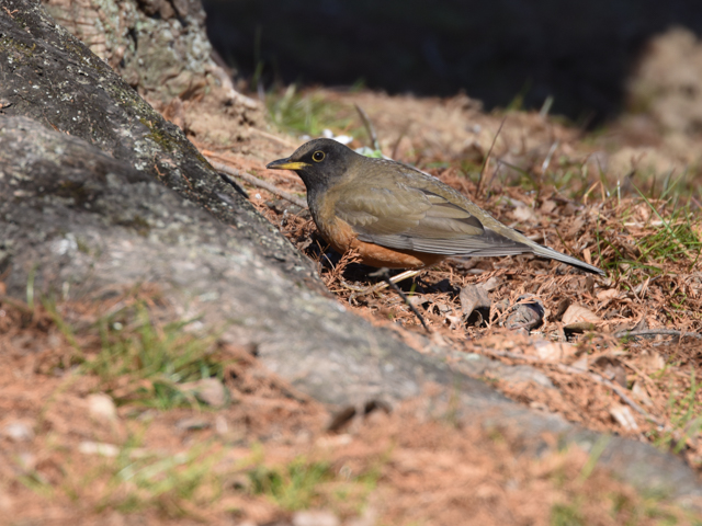 On sunny day of February 2017, I saw a Brown-headed thrush looking for food at the base of the tree in Mizumoto Park. I think this bird has a somewhat dark head and darker plumage so it may be a subspecies the Brown-headed thrush, Turdus chrysolaus orii.