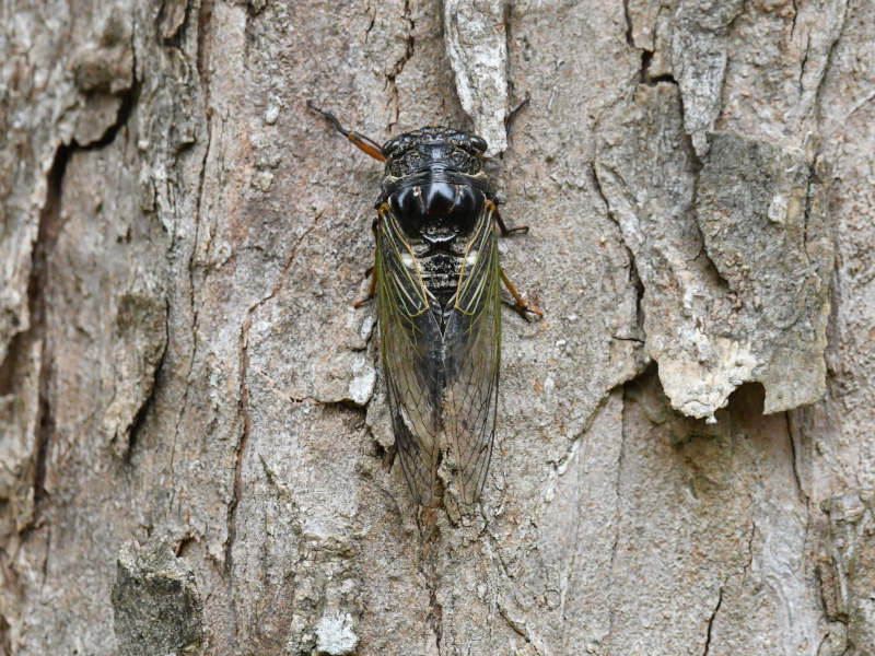 夏の暑い時期に西日本に行ったとき、よくクマゼミを見かけた。今年の夏、千葉県柏市でも鳴き声を聞いたが、姿は見つけられなかった。涼しくなった日(Sep 26, 2024)に中庭の歩道にクマゼミが落ちていた。まだ生きていたので近くの木に止まらせて写真を撮った。クマゼミが関東地方で生息数を増やしていることは本当だ。