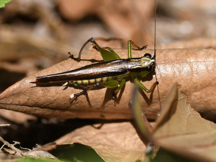 A construction fence has been erected at the boundary of Konbukuro Pond Nature Museum Park. There was a Japanese katydid-like insect on that fence (Nov. 4, 2023). It looks like the female C. maculatus I saw earlier (Sep. 16, 2023).