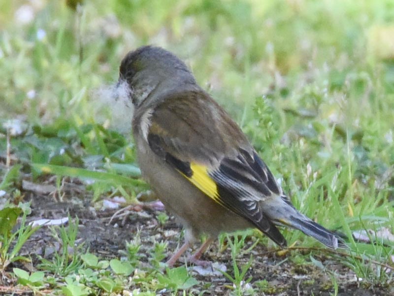 観察日:2016年4月15日、場所:柏市若柴の空き地,、個体数:オスとメスのペアらしい2羽、メスは巣材を集めている様子なので留鳥、メスの三列風切の白い外周幅は狭く目立たない。オスの三列風切の白い外周幅はメスよりわずか広いが目立たない。メス、オス共、大きさはスズメよりやや小さいように見えた。このような特徴を総合すれば、この2羽は亜種カワラヒワまたはコカワラヒワ、学名 Carduelis sinica minor[1]であることは間違いないだろう。