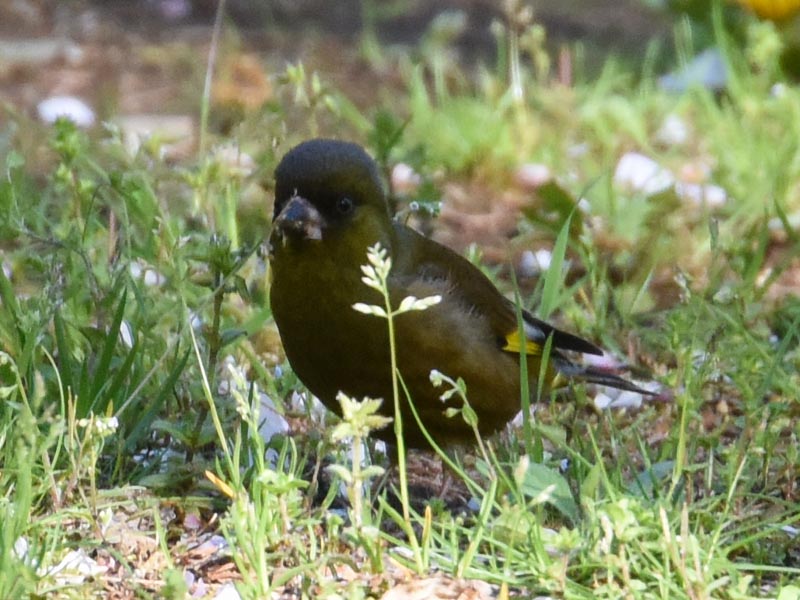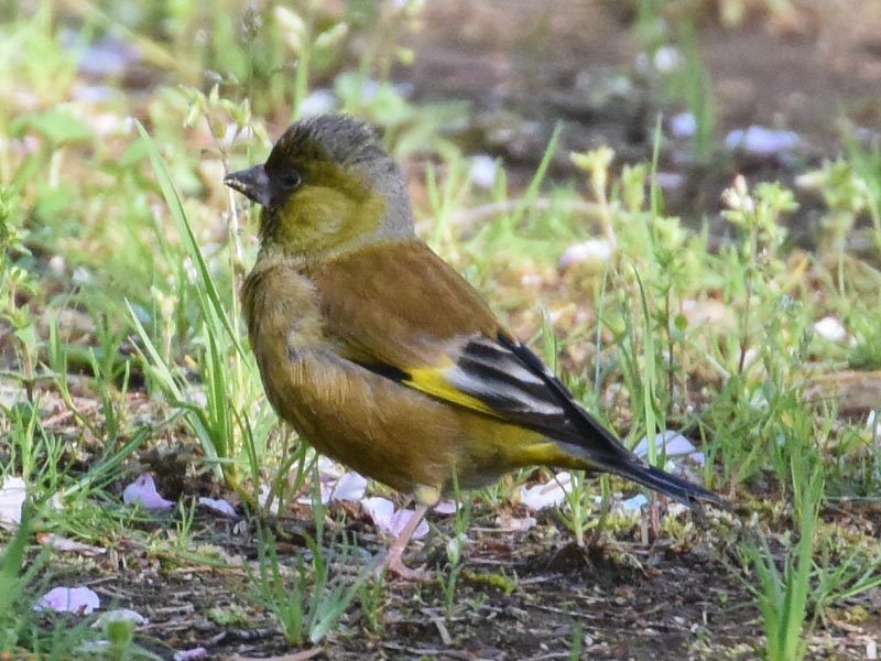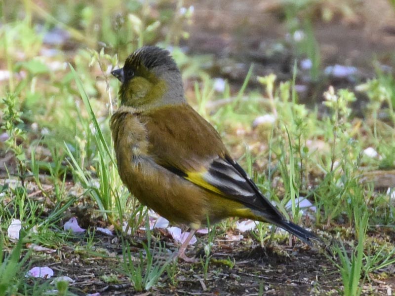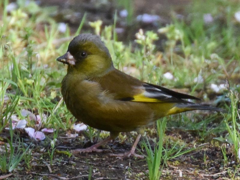 Which one are these Oriental Greenfinches? The season I saw the Oriental Greenfinches this time was spring, the white outer circumference is wider than that of No. 1 and No. 2, and they looked a little bigger than sparrows, so I thought they were Grey-capped Greenfinches[3] or migratory Greenfinches.[4]