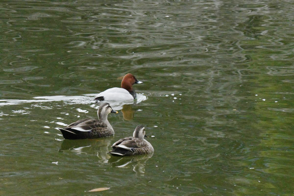 ホシハジロとカルガモ, Common Pochard and a Spot-billed Duck