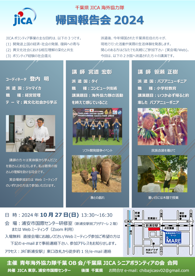 「千葉県JICA海外協力隊帰国報告会2024」開催 2024年10月27日(日)