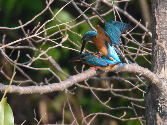 カワセミ・ペアの交尾, Mating of kingfisher pairs