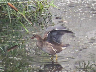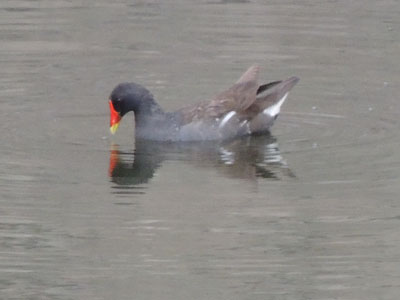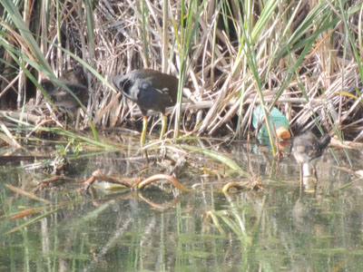 この日にはバンを3羽見た、1羽は水の中、2羽は地面で餌をとっている。