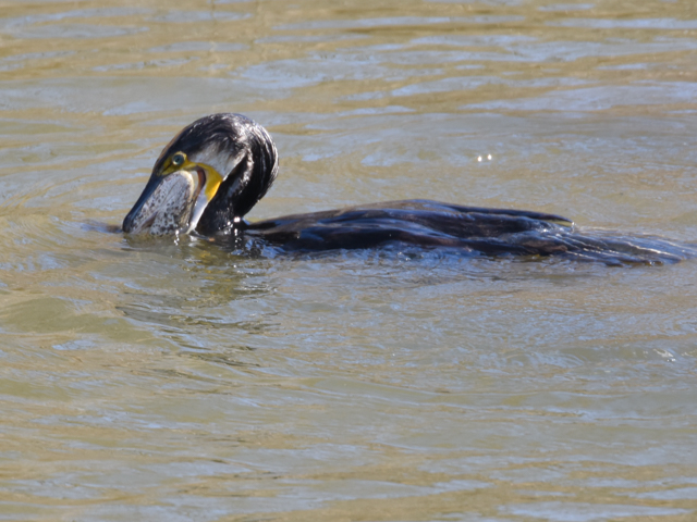 2026年1月5日、ホシハジロとカルガモが水面で並んた写真を撮れた。体の特徴の違いが判る。ホシハジロの体はカルガモの体より深く水に沈んでいるので尾羽は水中の隠れている。カルガモの尾羽は水面より上に見える。同じ池に住んでいても互いに異なった餌を食べたり餌の取り方が違うので争うこともなく共存できるのでしょう。