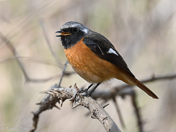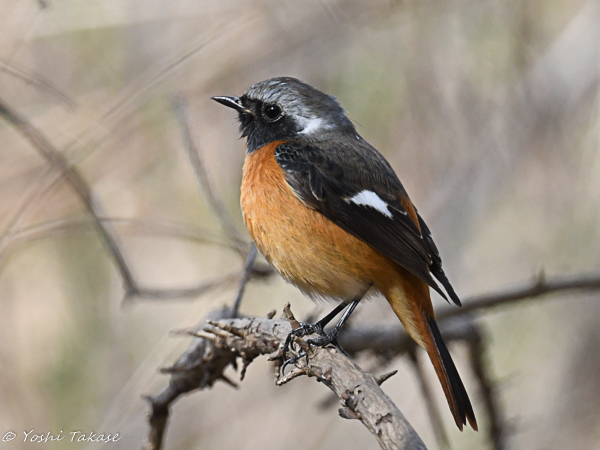 和名: ジョウビタキ, English: Daurian redstart, Binomial name: Phoenicurus auroreスズメ目 > ヒタキ科 > ジョウビタキ属 > ジョウビタキ