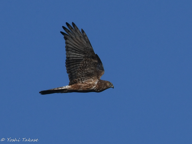 天候が良く順光状態だったので羽の模様も良く分かる。日本には越冬のために飛来する冬鳥のチュウヒのようだ。