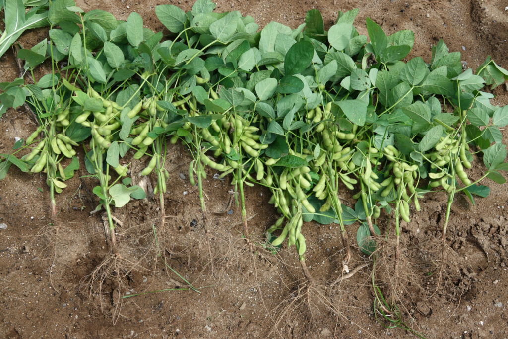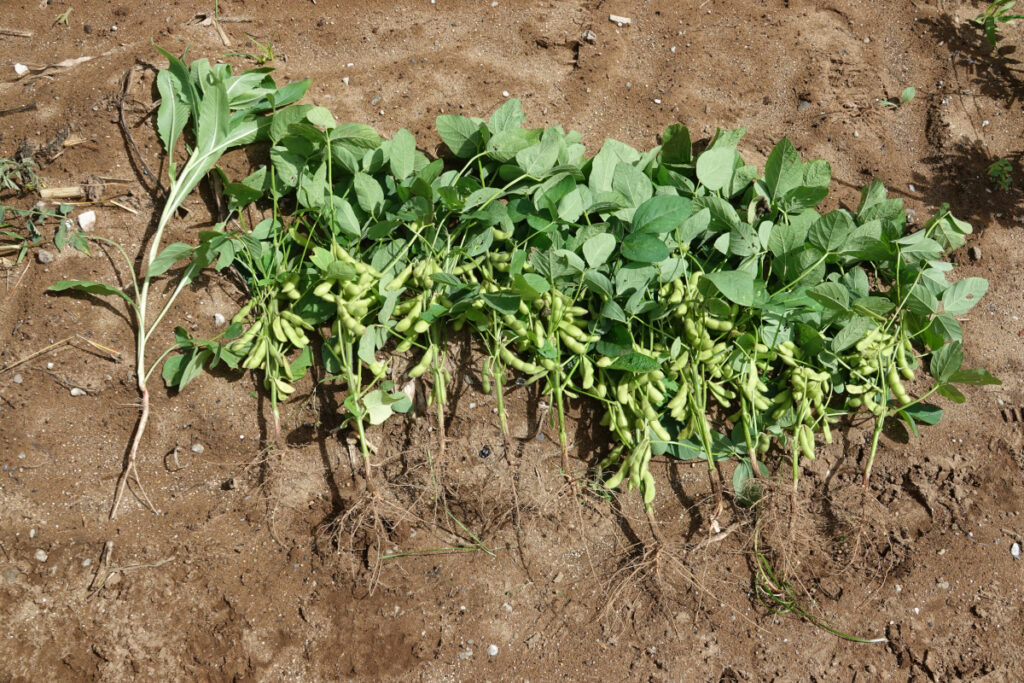 2025年7月17日、2回目にラ・フランスの周りに植えたエダマメです。収穫しょう。