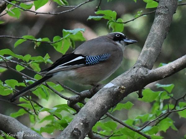 2021年4月9日、こんぶくろ池自然博物公園を散歩した時、前回(2021.03.01)の場所に近い木の枝でカケスを見かけた。カケスは冬を ここで過ごした。暖かくなったら居なくなるだろうと思っていたがまだ留まっている。カケスは餌を足で抑えて食べているようだ。翼の基部の青いまだら模様はとてもきれいだ。