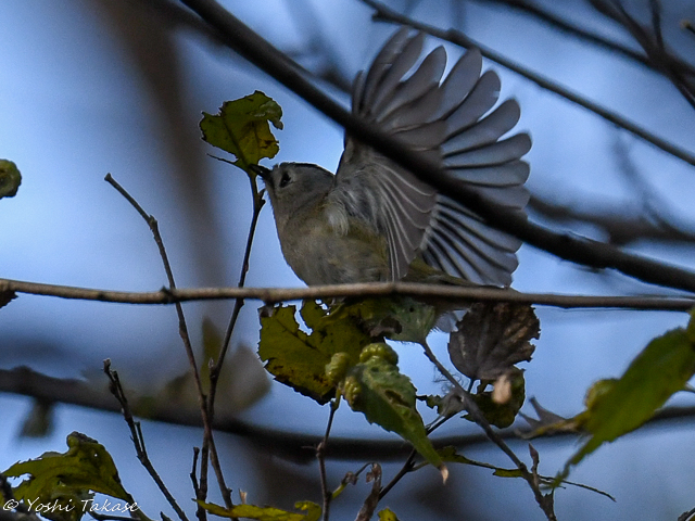 キクイタダキは針葉樹で忙しく動き回るだけでなく広葉樹の間も飛び回った。