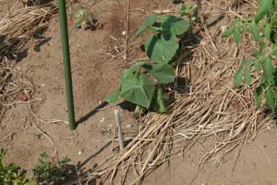 2025年9月20日、7月25日に地這キュウリ「夏太郎」の種を蒔いた。7日後に7か所の内4か所から芽が 出た。その後どんどん大きくなって花が咲き実がなった。