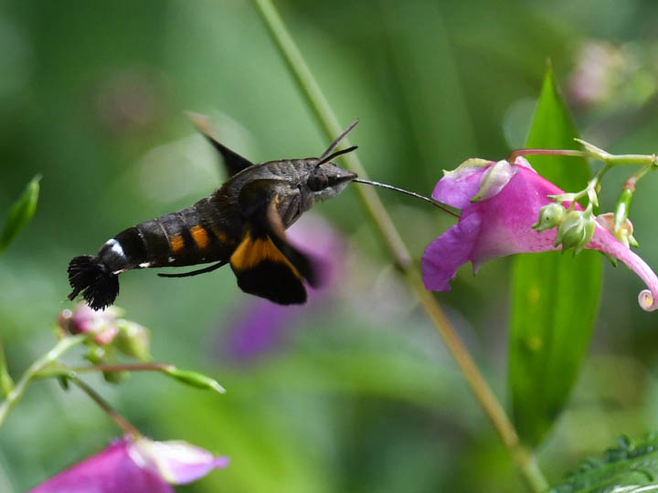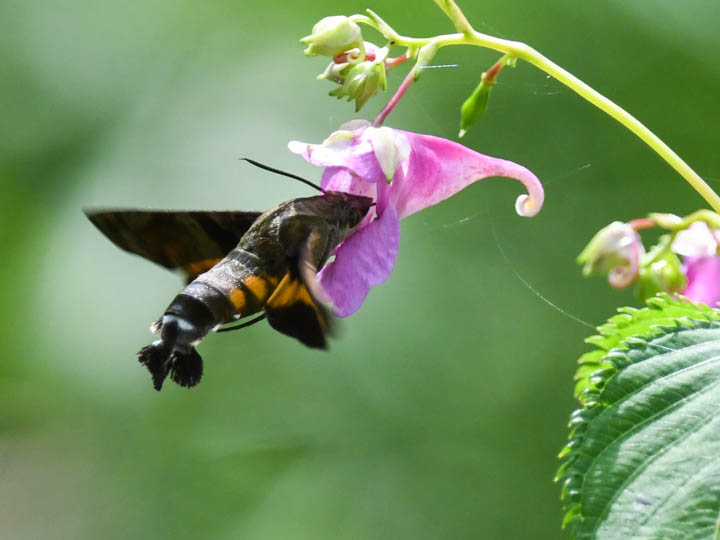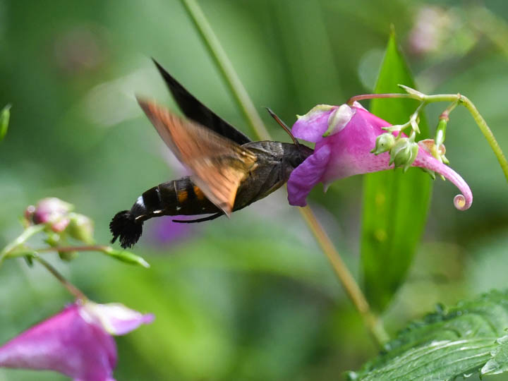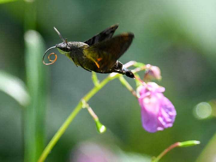 ワタラセツリフネソウで吸蜜するホシホウジャク