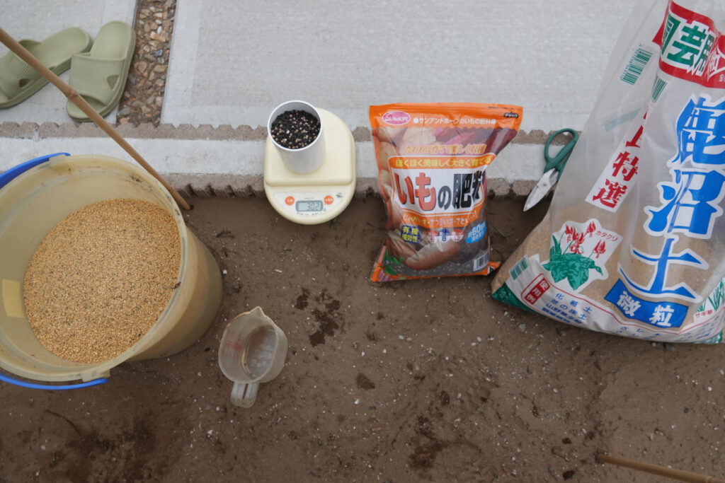 土:(堀上土4L+鹿沼土2L+芋の肥料300g)×2