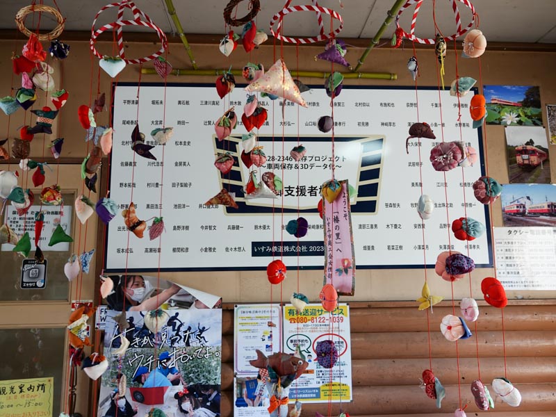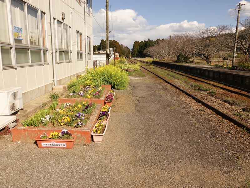 When we visited Isumi City, we stopped by Kuniyoshi Station on the Isumi Railway. It’s an unmanned station. Rapeseed flowers were blooming on the platform. They are managing the railway with various ideas.