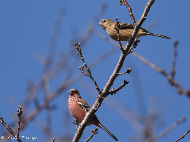 この場所にはベニマシコの群れがやってくるのでオスとメスを見ることができた。ベニマシコのメスは地味な色をしている。