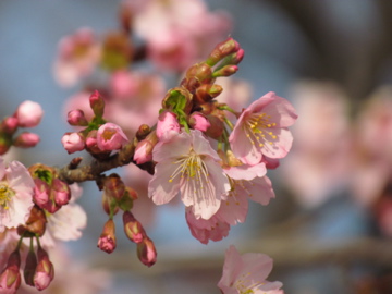 シュゼンジカンザクラが咲きました。この3羽は同じ場所で同じ関係で平和に過ごしている様子です。(柏の葉公園 2011/3/23 15:59)