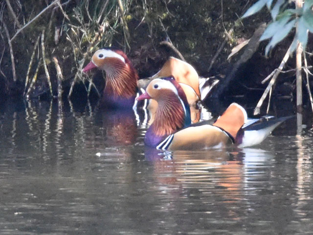 2016年2月28日、千葉市泉自然公園の野鳥ボランティアガイドに参加した。 泉自然公園には区切られた複数(5?)の池があり、各種のカモがいた。この池にはオシドリがいるとインターネットサイトに載っていたので期待していた。野生のオシドリを見たことはなかったからだ。一番大きい池に行くと確かにオシドリがいた。マガモなどのように人間の近くにも来るのかと思っていたが、野生のオシドリは水辺の木陰を好み、開けた水面にはあまり出ないと言う。