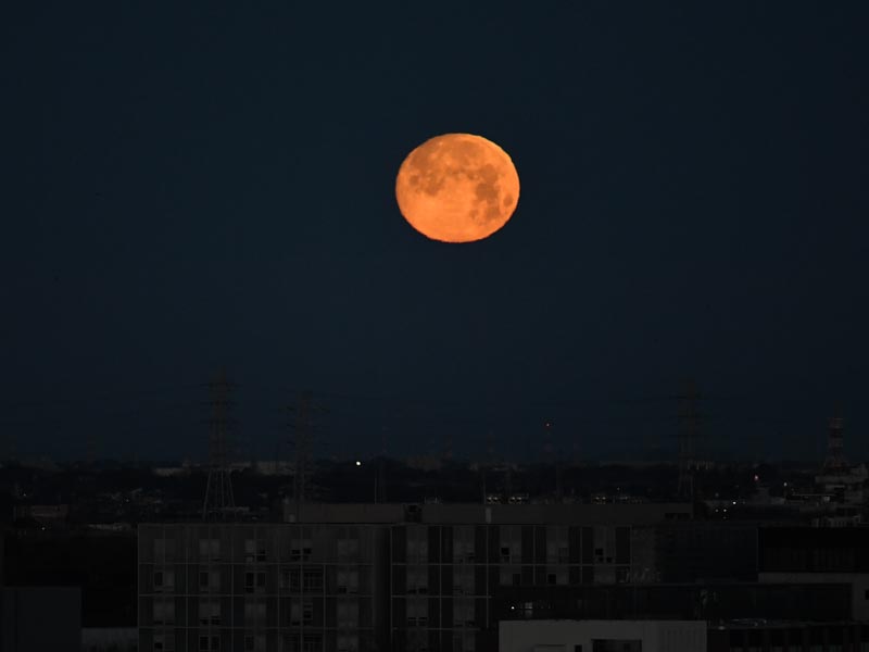 The sight of the sun setting on the western horizon is familiar, but I had never consciously seen the moon setting. The sky is still dark, giving it a more mysterious atmosphere. The moon, which appears whitish in the sky, appears reddish when it is near the horizon.