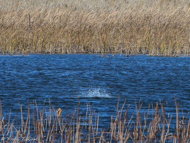 About an hour after I saw the Osprey flying over the sky I was able to see the scene where it dived for a fish. The place was the opposite side of the Pond and quite far, but I was able to confirm the action of the Osprey that dived for a fish deeply enough not to be visible and flied up from the water catching a fish.