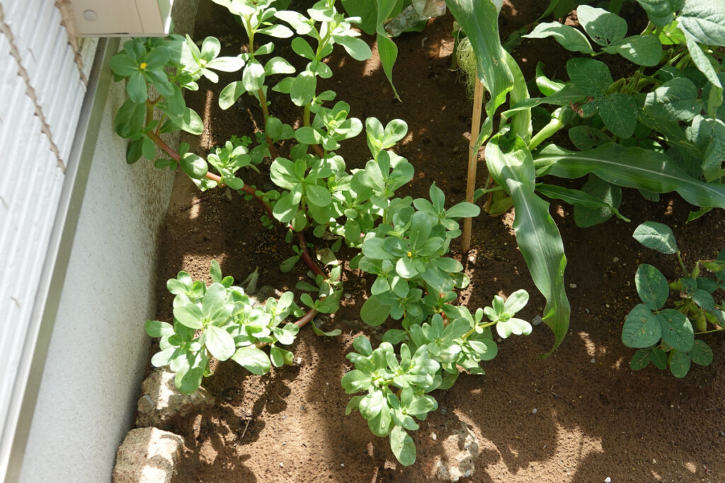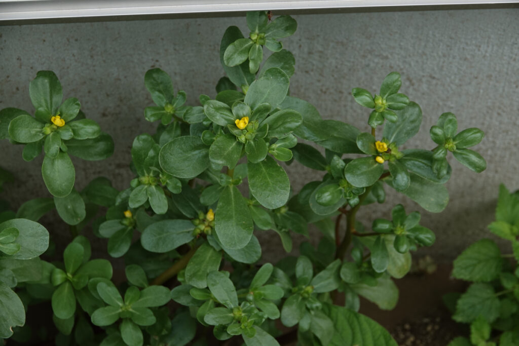 千葉県茂原市に引っ越してきて、雑草のスベリヒユを探したが、どこにも見つからない、なぜかな?園芸用植物の種として販売されているマツバボタンとスベリヒユの種を購入して家の土台周りに撒いてみた。種は大変小さく、どこに撒いたか探せない。やがて、マツバボタンが2,3株、スベリヒユも3,4株芽を出した。発芽率は1%にも達しないほど大変低かった。夏になって、マツバボタンは綺麗な花を咲かせ始めた。子供の頃山形の実家でみた花を思い出した。スベリヒユも食べてみた。やはり昔の味そのものだった。