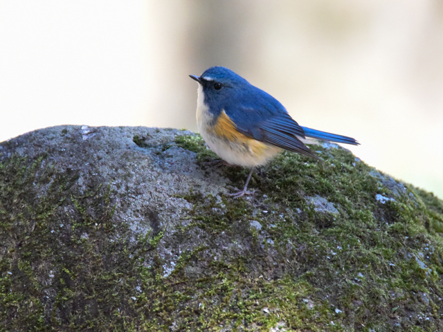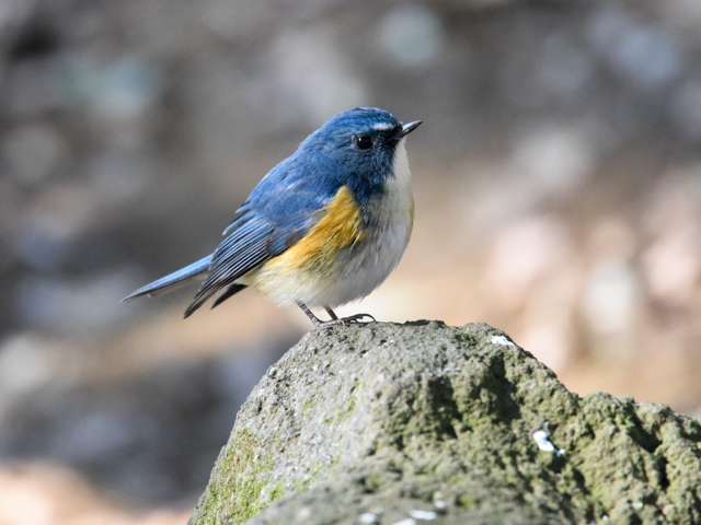 次に、ルリビタキは近くの岩の上に止まって写真のモデルになってくれた。