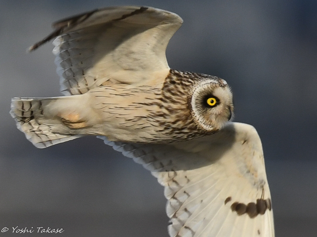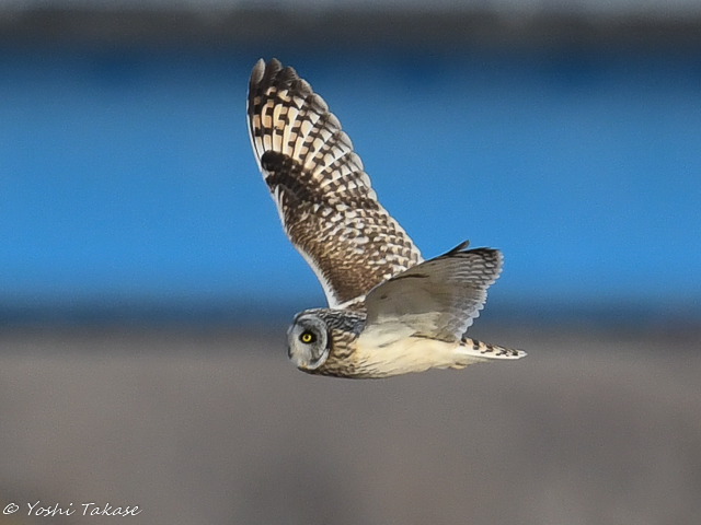 On February 7, 2020, I went to the Tega River embankment on the south side of Aoyagi Bridge for the purpose of direct light photography. A short-eared owl flew almost in direct light against the background of the bridge. There were six or seven photographers on the embankment, but I was walking on the embankment, so I happened to be able to photograph the owl in direct light from the opposite side of them.