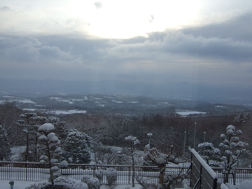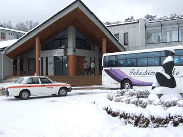 仙台の路面も雪で白かった、やや珍しいのではないかな。二本松に着いた、一面雪景色、深雪まではいかない雪化粧風情だ。