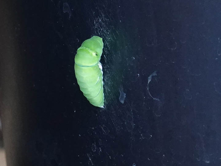 アゲハチョウの蛹 9月 チョウ目 昆虫 15:25 30-Sep-2023 Swallowtail butterfly pupa 14:13 27-Sep-2023 14:14 27-Sep-2023 ベランダの植木鉢にアゲハチョウの蛹が付いた。ダイダイの木にアゲハチョウが来て産卵したらしい。全く気付かなかった。その隣の植木鉢の壁面にくっ付いて蛹になった。 Post-Time: 2023年9月27日 TOP 投稿ナビゲーション ホシホウジャク中秋の名月