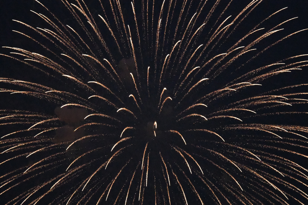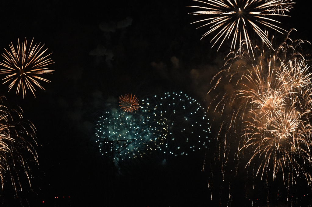 The weather was good this day, so I could see the fireworks well from my house. The distance from my house to Lake Teganuma in Abiko City is about 6 km, so when I took a picture of the fireworks with a telephoto lens, the larger fireworks went out of frame.