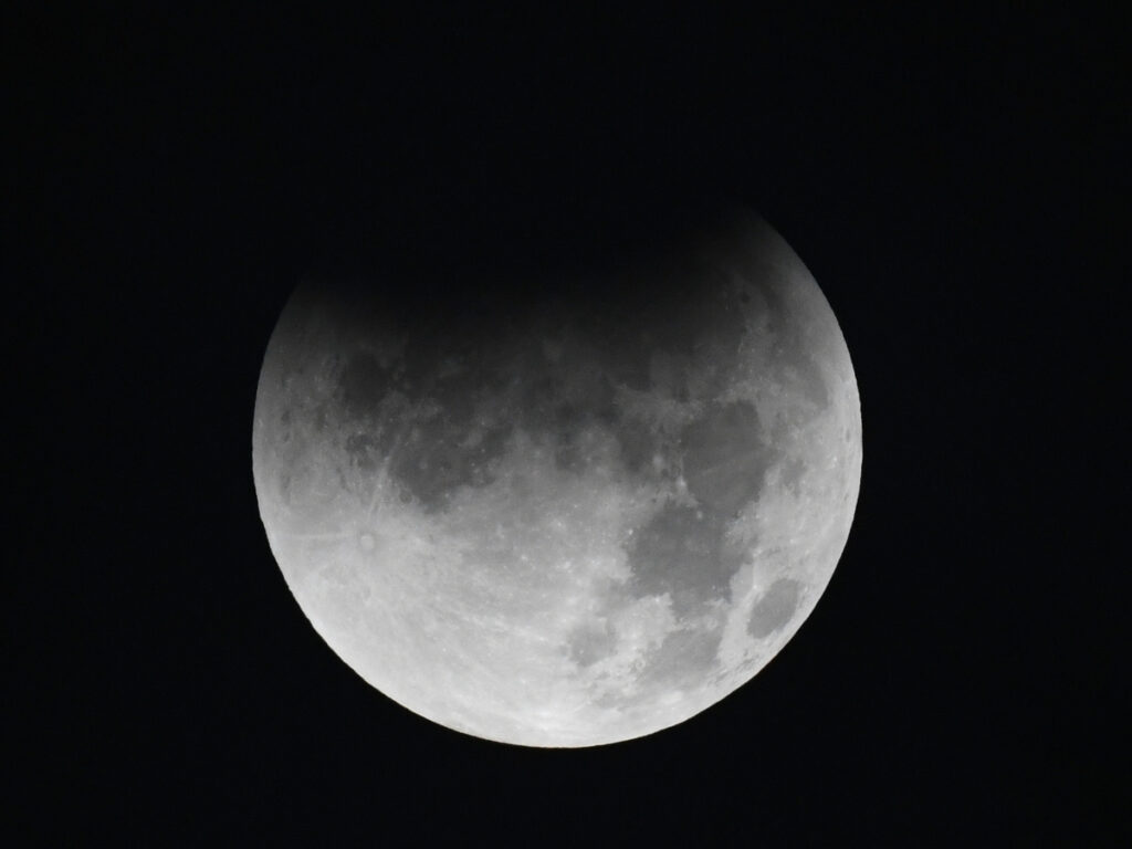 2025年9月8日、「皆既月食」が起こりました。1時半頃から満月が欠け始め、2時半頃にかけて進行しました。