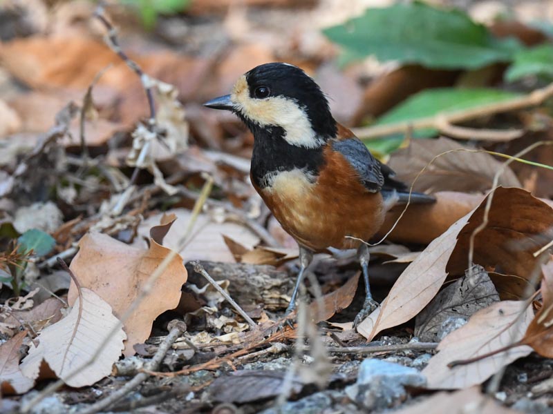 ベンケイヤマガラはヤマガラの群れと一緒に行動しているようだ。今度はヤマガラが現れた。両者の姿は似ている。ヤマガラの場合は、頭部と喉の部分が黒く、額から頬、後頭部にかけて白っぽい。翼は青みがかった灰色に見える。ベンケイヤマガラの場合は、頭部は薄い黒だが、喉の部分は黒くない。翼は青みがかった灰色に見えるが、他の部分は茶色っぽい鉄さびのような色だ。