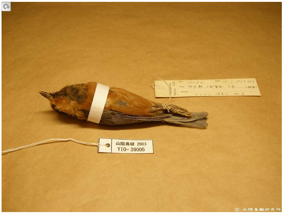 標本番号: YIO-39005, 学名: Parus varius, 採集終地: 栃木縣上都賀郡今市