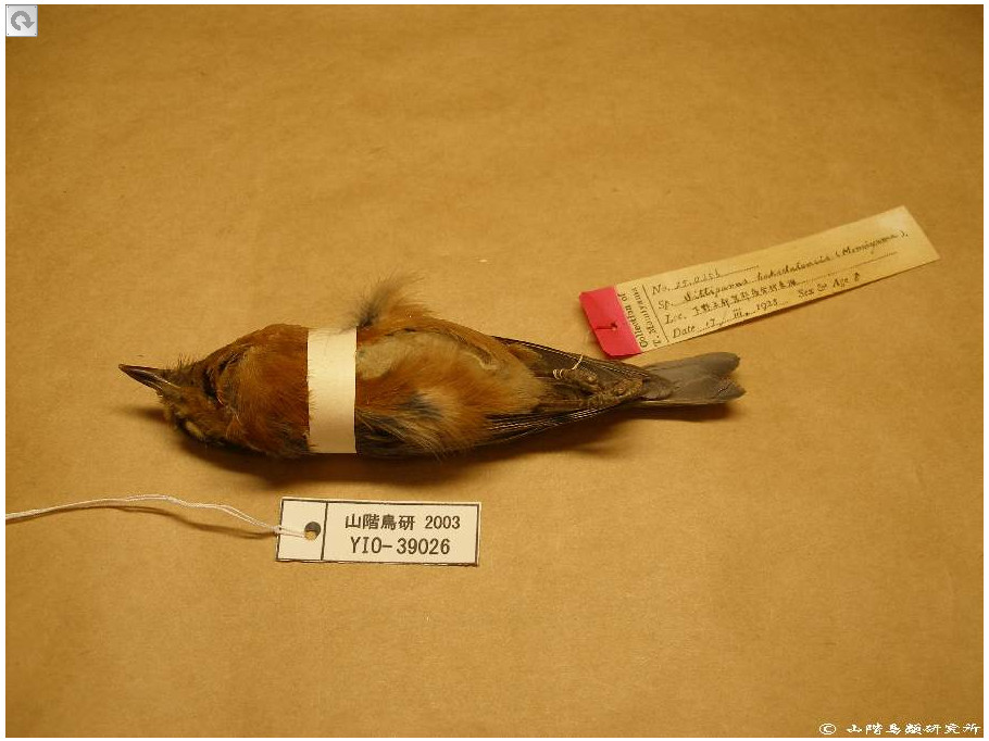 標本番号: YIO- 39026, 学名: Parus varius, 採集終地: 下野上都賀郡落合村長畑