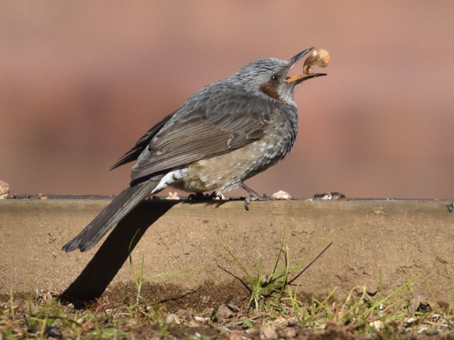 On April 5, 2017, I strolled in Mizumoto Park. There were two White-cheeked starlings on a grassland at the “Kingfisher’s village”.