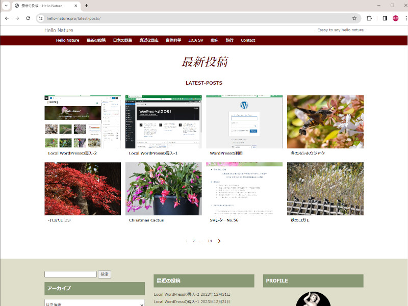 現在、固定ページを9ページ、投稿ページを30ページ余制作してサーバーに載せました。完成版ではないのでリンク不十分な箇所が沢山あります。従来のHTMLコンテンツも全部移したいのですが、量が多いので今後徐々に行うつもりです。興味のある投稿などありましたらご覧ください。
